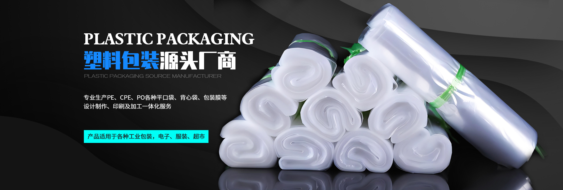 產(chǎn)品種類:PE、CPE、PO各種平口袋、背心袋、包裝膜等等。